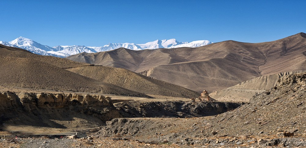 Early in the morning, we take a 25-minute scenic flight to Jomsom [2720m], Mustang's administrative headquarters. We drive to Kagbeni [2800m] and stop briefly northern end of the village, where a police checkpost marks the beginning of the restricted area. We have our special permits stamped. Our journey into the Kingdom of Mustang begins here. Following the ancient, windswept salt-trade route along the Kali Gandaki River, we finally reach Chhuksang [3050m]. The afternoon is then yours to explore the village.